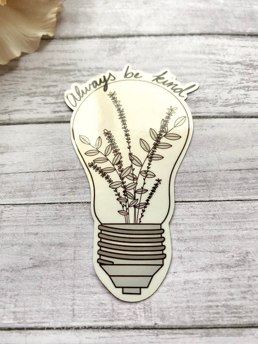 Always be kind lightbulb sticker, inspirational stickers, motivational decals, cute flower stickers, e-reader sticker